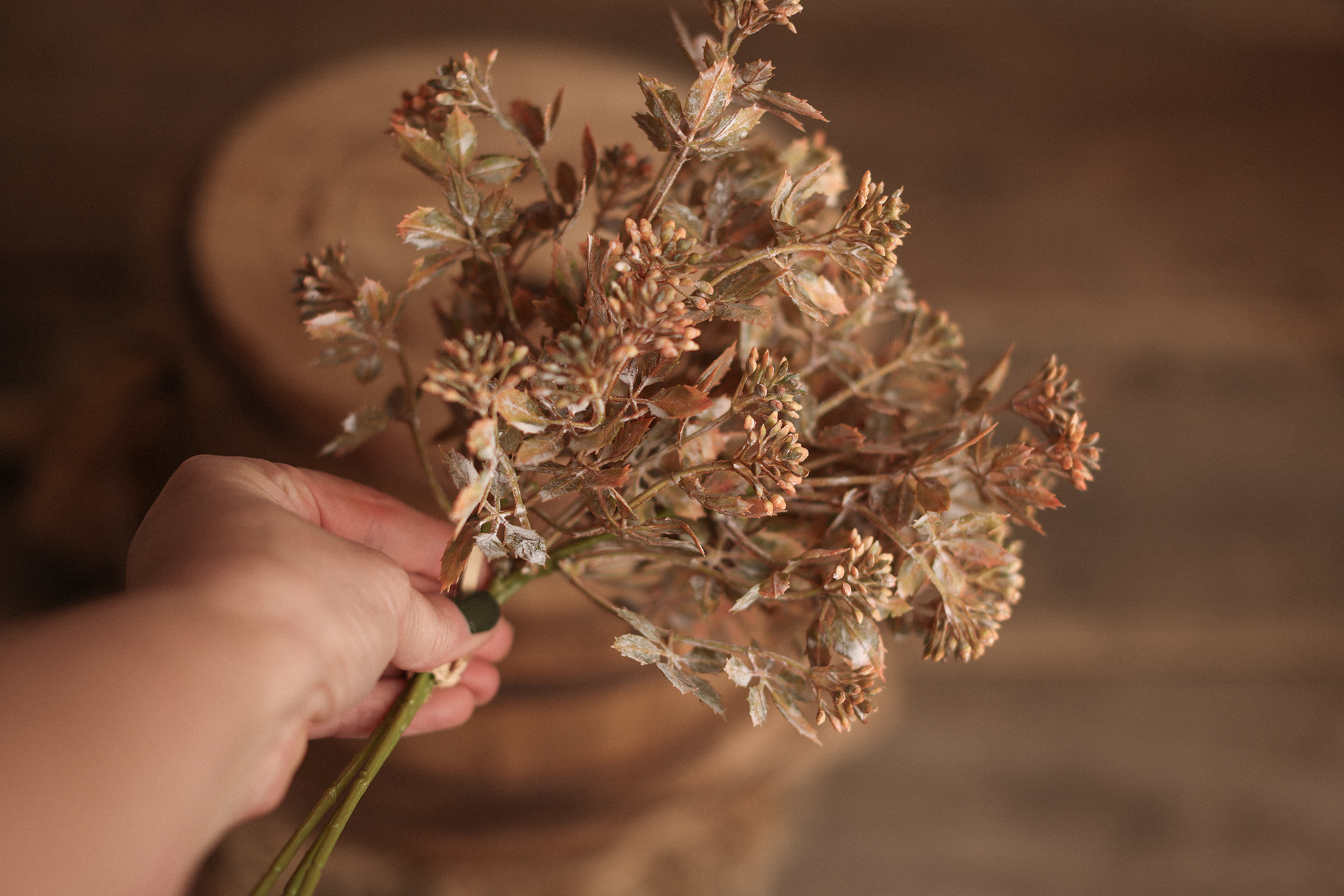 The Autumn Rust Botanical Bundle captures the cozy essence of fall with its rich, earthy tones of bronze and amber. Each stem is detailed with textured buds and softly veined leaves, creating a beautiful sense of depth and warmth.