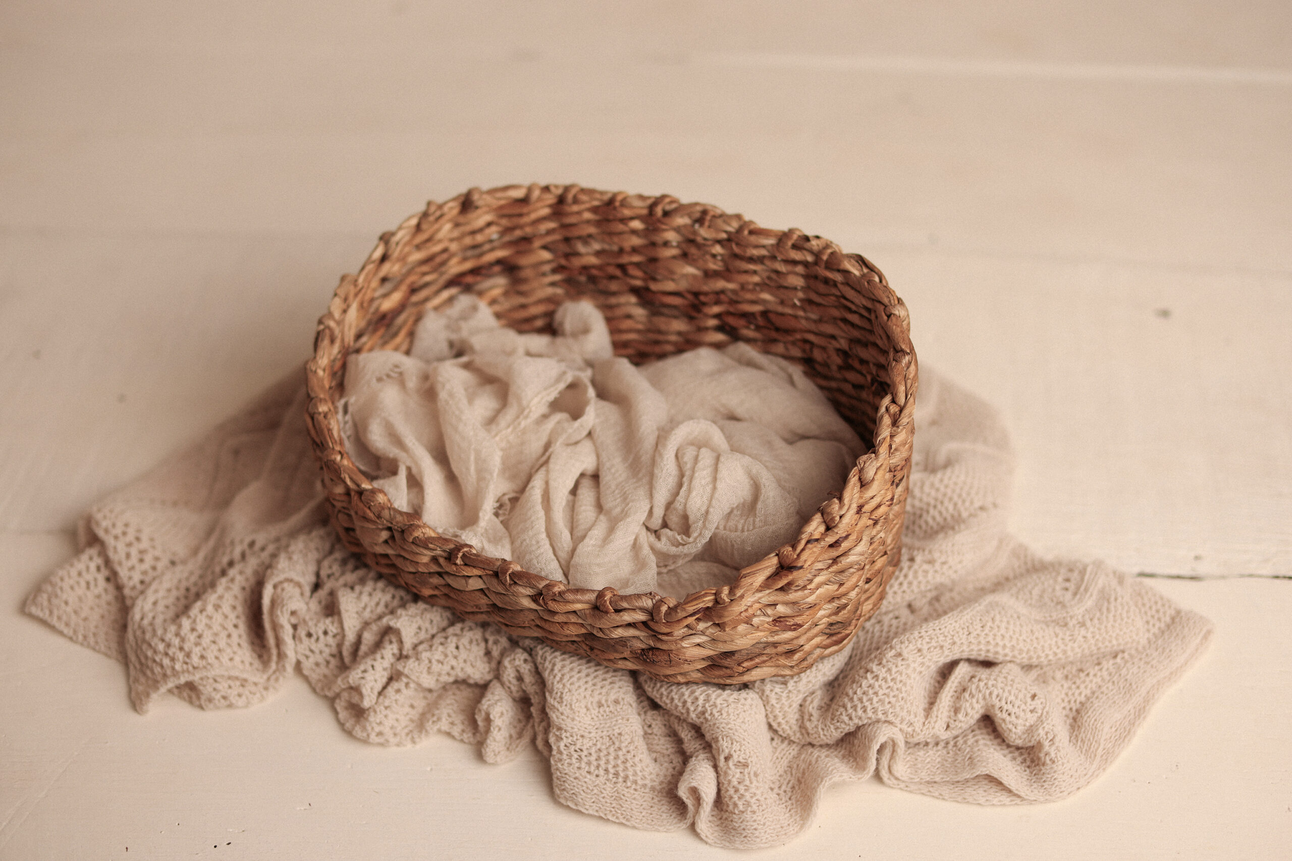Its snug oval shape gently cradles the baby, making it ideal for side-lying poses or cozy wrapped shots. Lightweight yet sturdy, this basket is perfect for both studio and lifestyle setups.