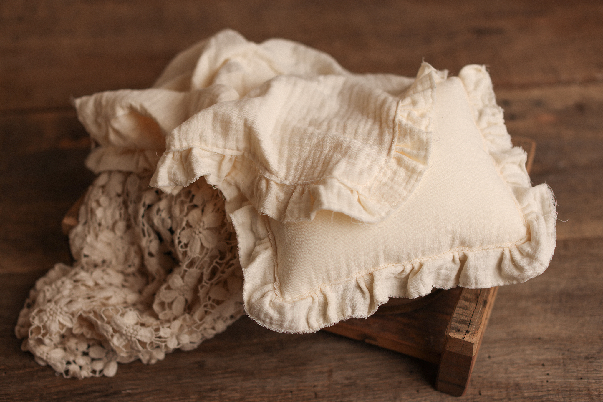 NEW! Velvet Mattress and pillow with ruffles - RUSTY
