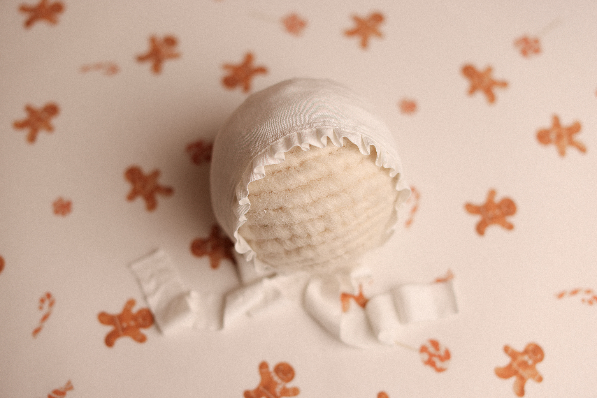 Newborn Onesie + free headband / Hat – Beige Burlap cut-out
