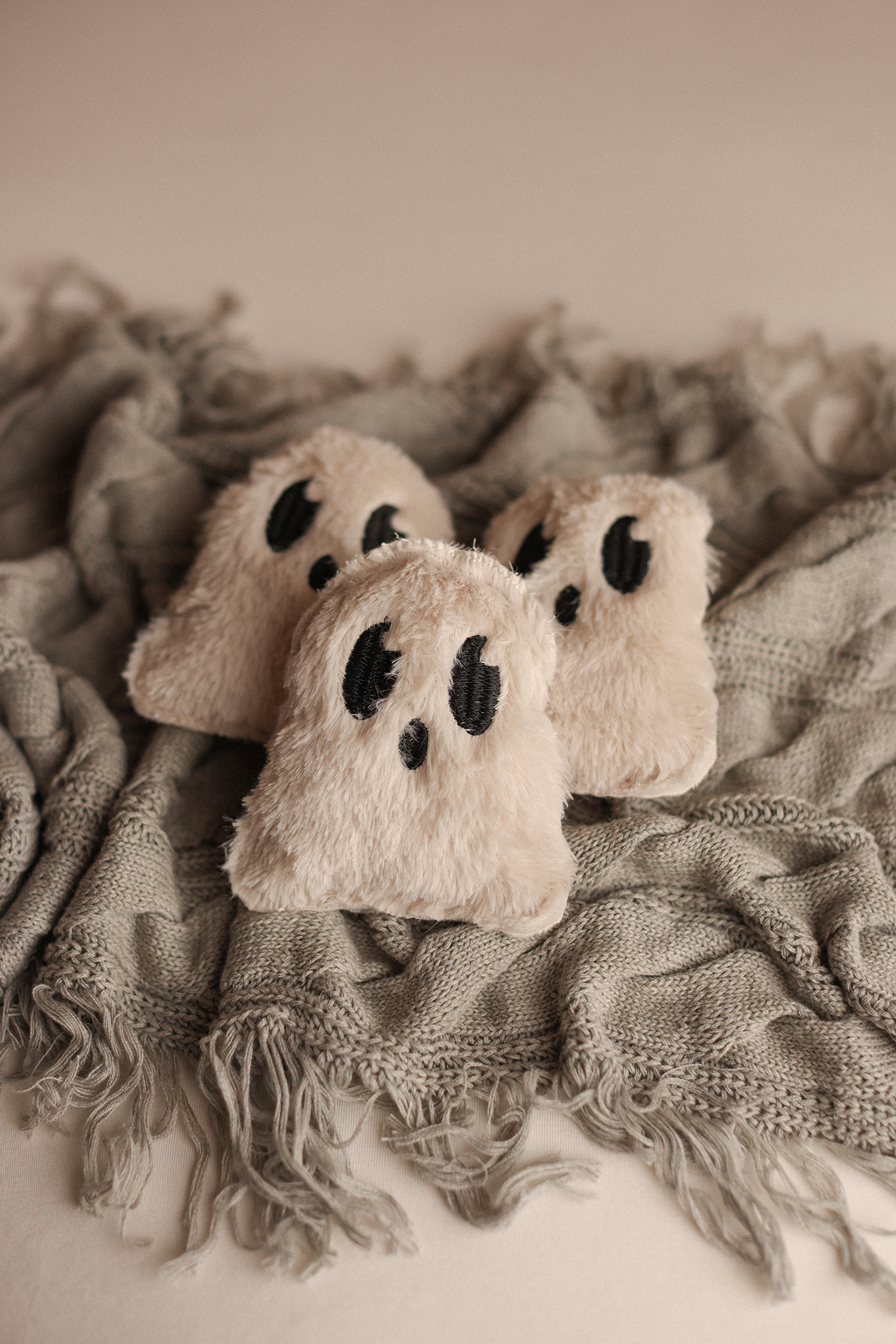 Soft, whimsical, and just a little bit spooky, our fuzzy little ghost is the perfect seasonal accent for your newborn or baby sessions.