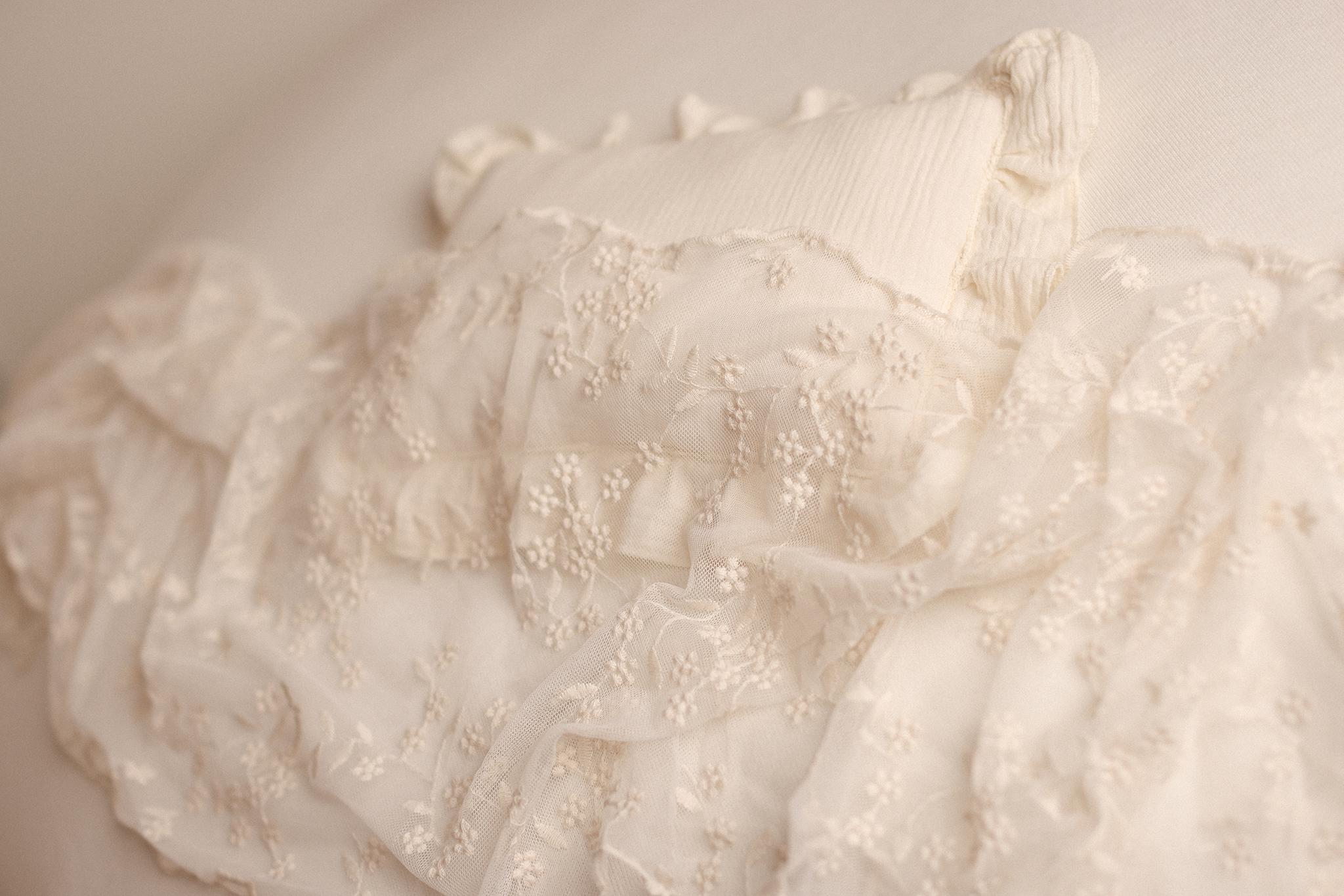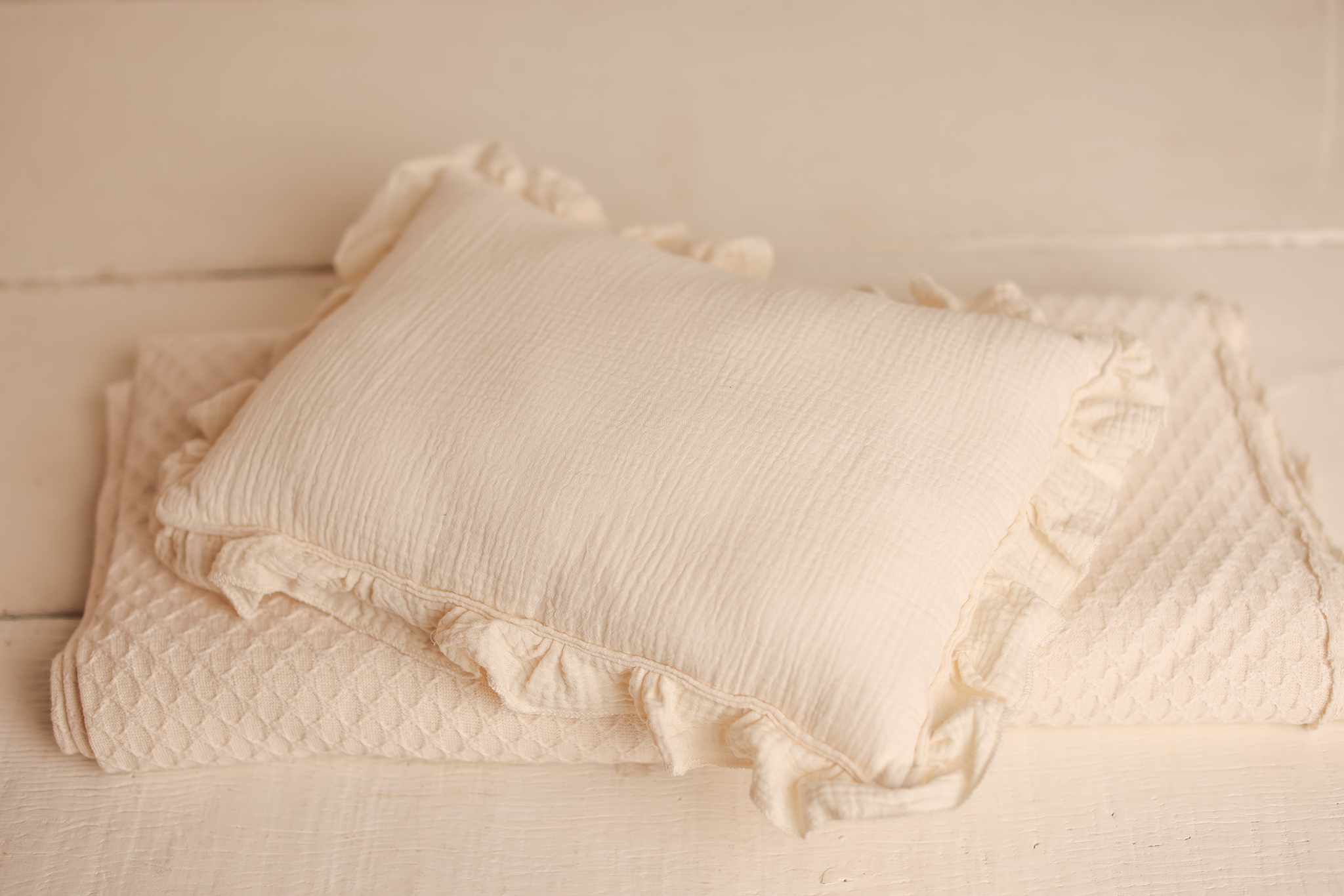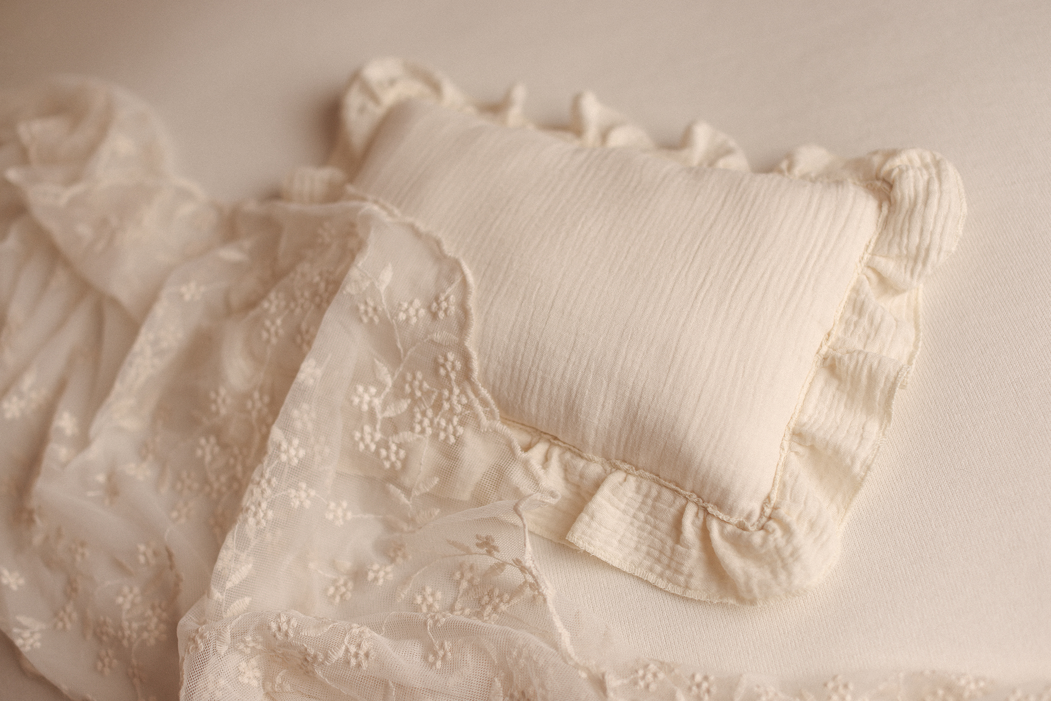 Whether styled simply or layered into a more detailed scene, the Heirloom Ruffle Pillow adds depth, softness, and a classic newborn feel to every image.