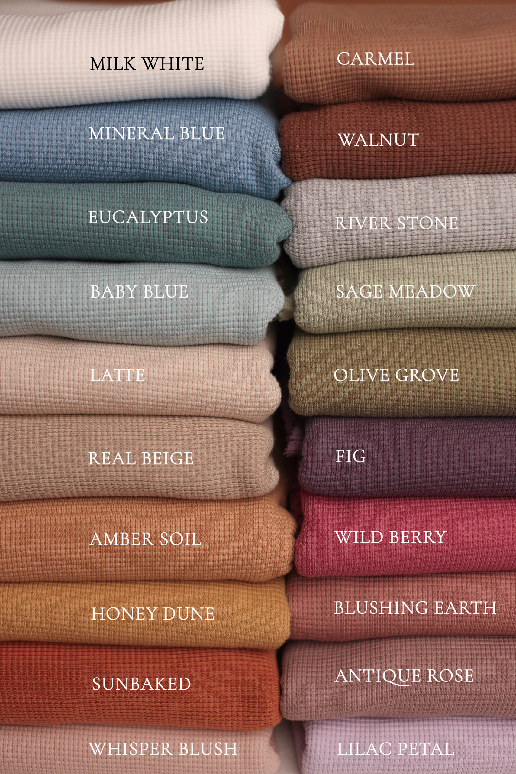 | NAME | Milk White, Mineral Blue, Eucalyptus, Baby Blue, Latte, Real Beige, Amber Soil, Honey Dune, Sunbaked, Whisper Blush, Carmel, Walnut, River Stone, Sage Meadow, Olive Green, Fig, Wild Berry, Blushing Earth, Antique Rose, Lilac Petal |