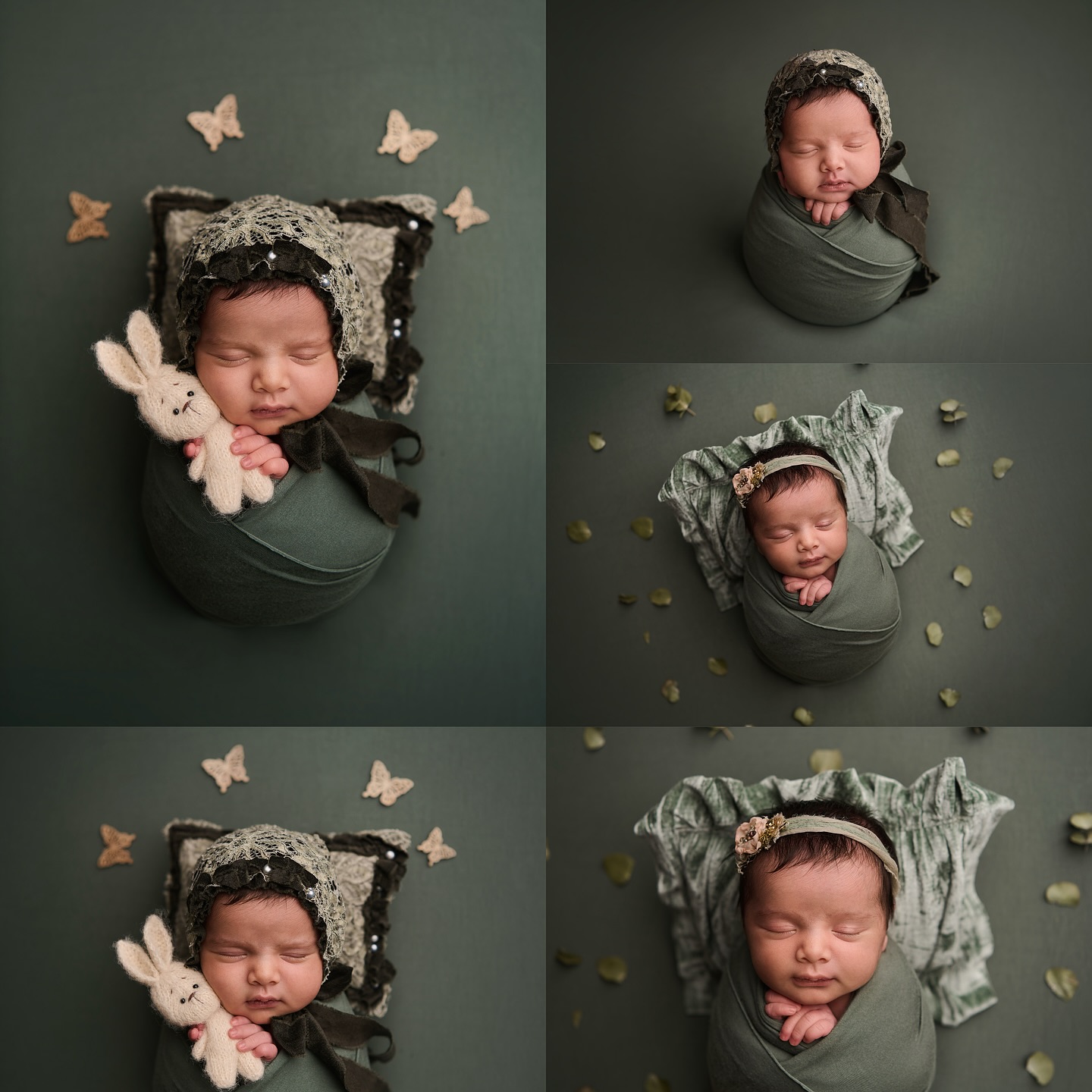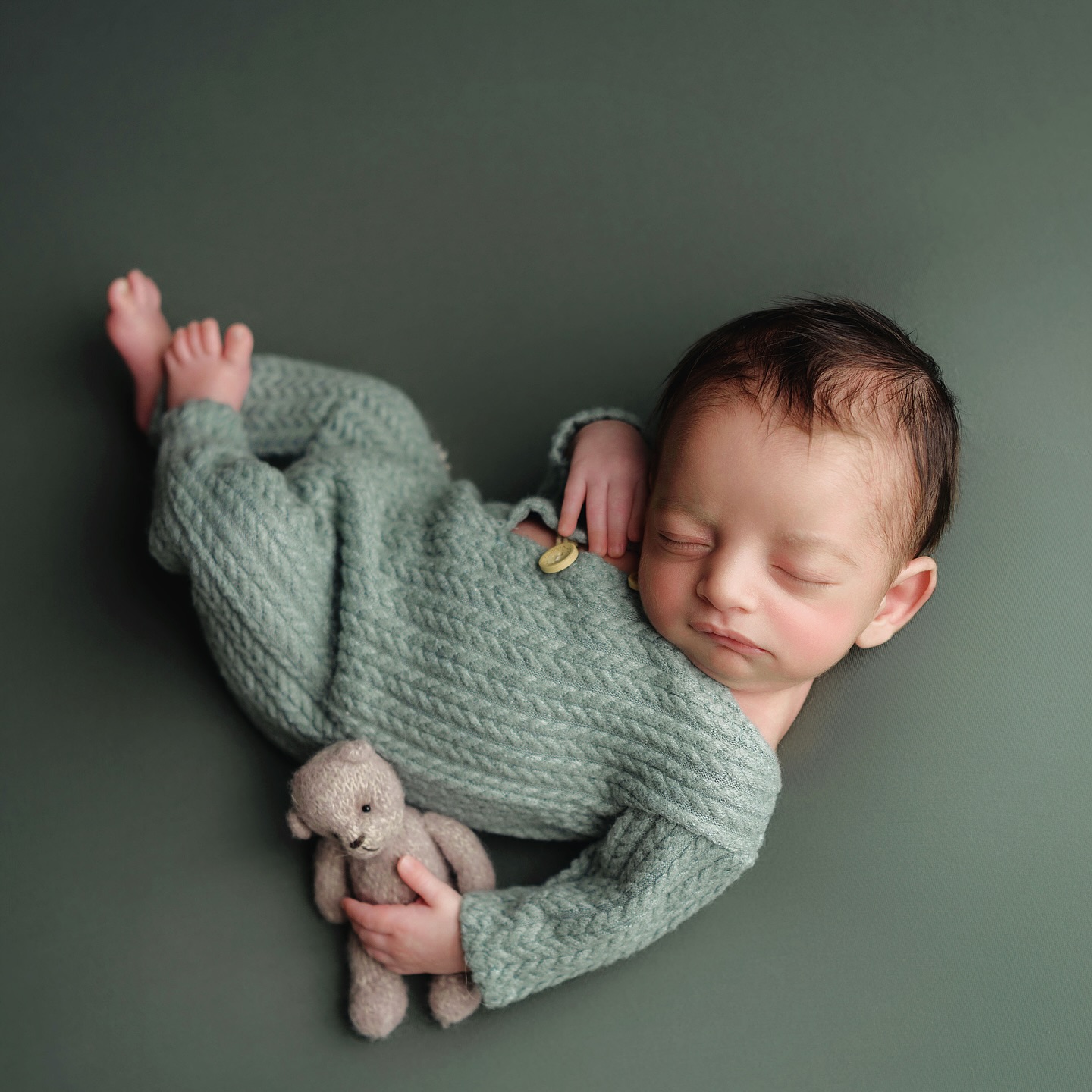 Laurel wraps your baby in a slightly lighter eucalyptus hue, perfectly paired with its deeper backdrop counterpart for a seamless, tonal look.