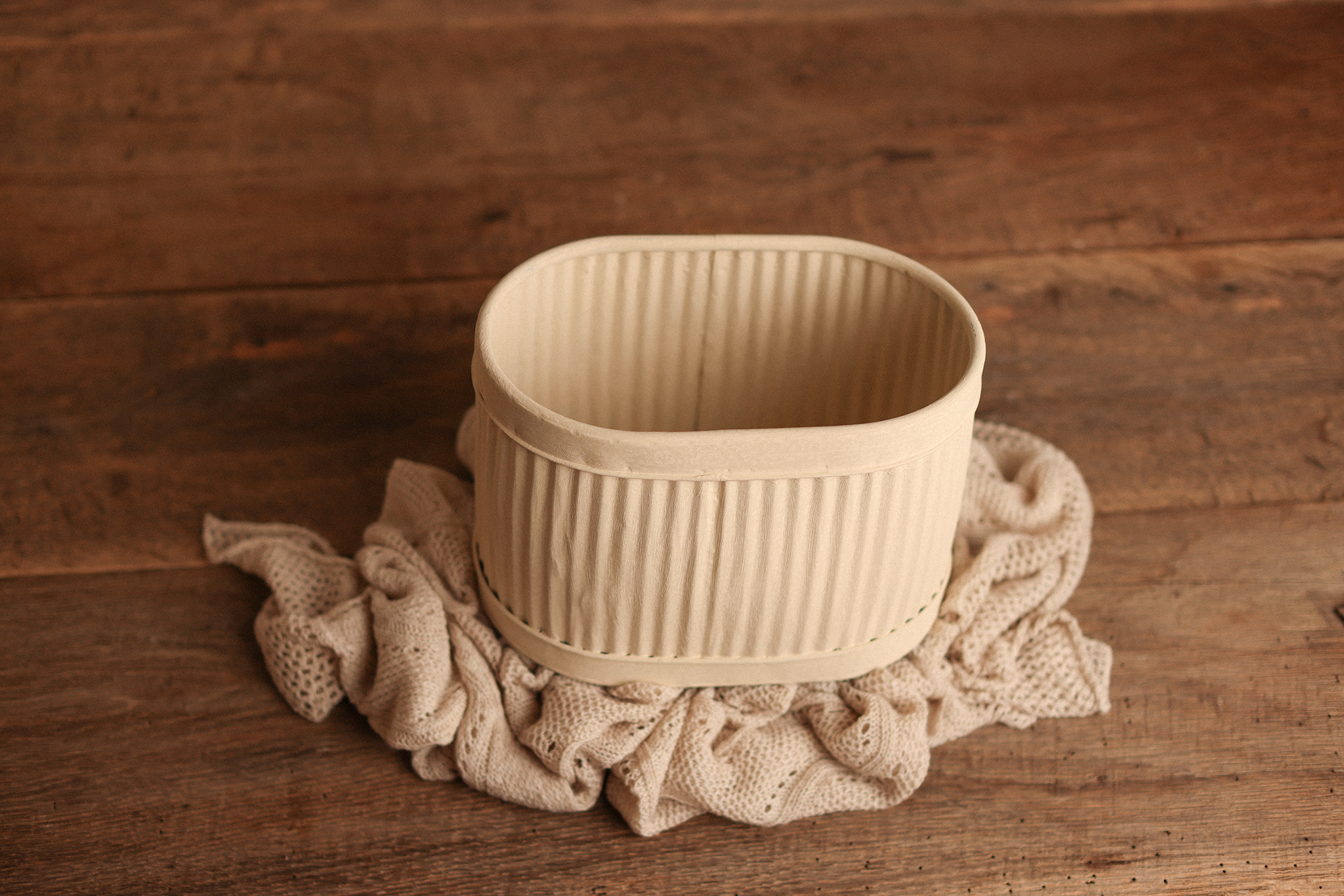 This charming oval bucket is the perfect size for newborn photography sessions. Its low profile and wide opening make it ideal for cozy posing, just add a soft layer or knit blanket, and your tiny subject is perfectly framed in farmhouse-style charm. A timeless prop for natural and earthy photo stories.