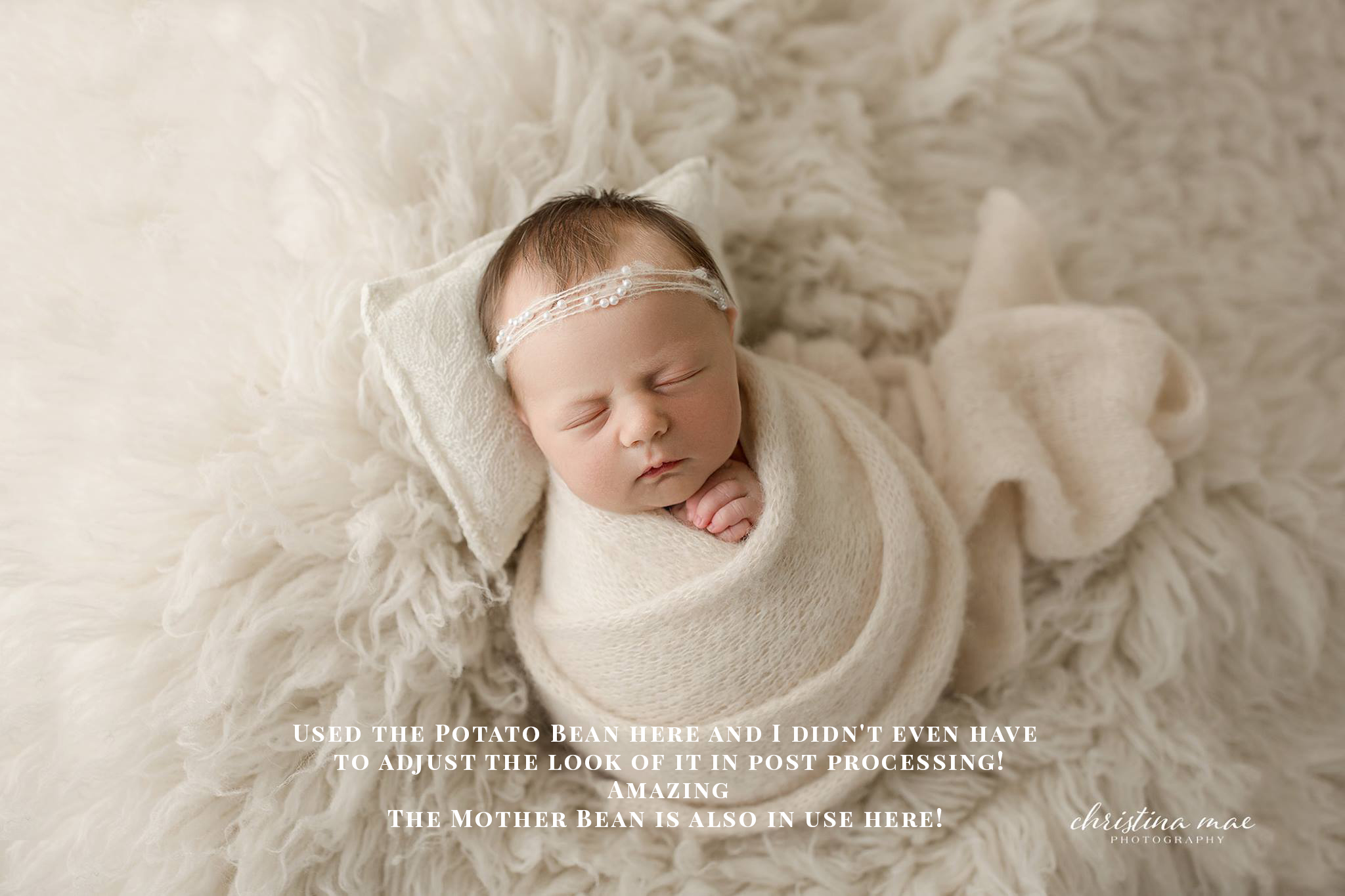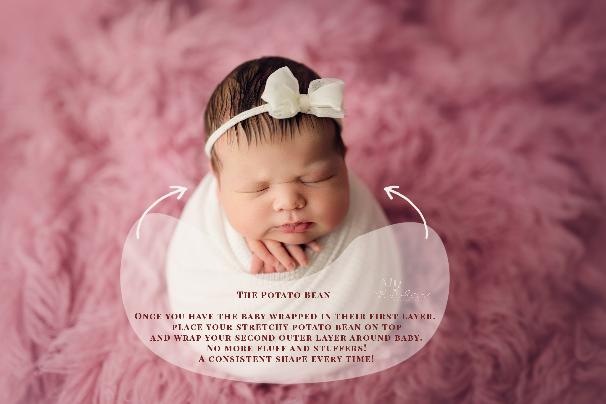 We HIGHLY recommend Erin Tole Wrap videos if you don’t already have them. Our potato bean gives your newborns the perfect amount of “roundness” to create a gorgeous photo. Get your confidence and knowledge about the unique way Erin wraps her babies! Erin Tole Wrapping Video