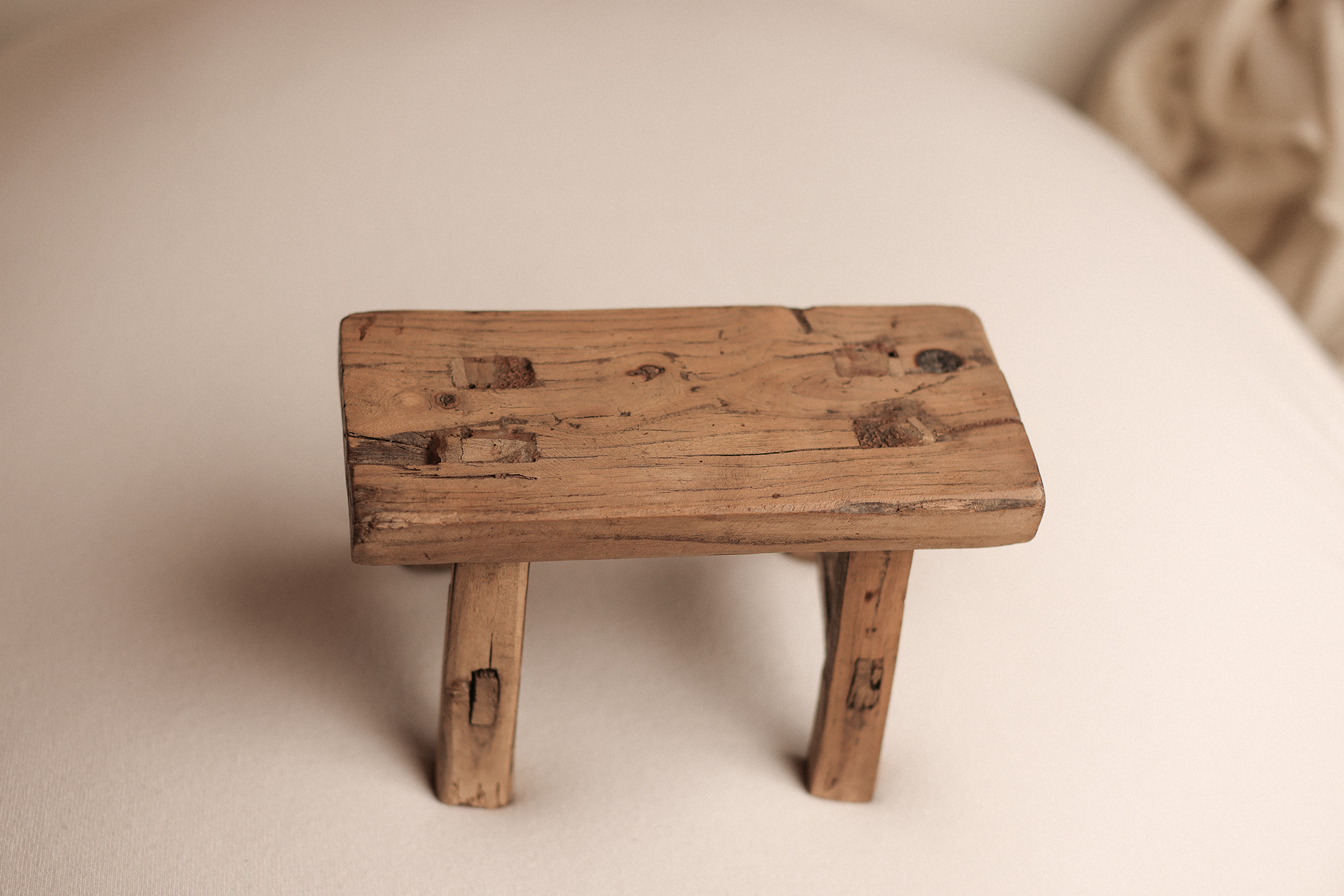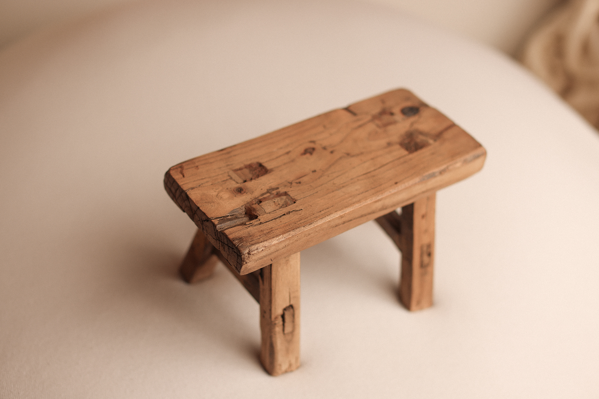 With its beautifully worn wood grain, rustic joints, and timeworn charm, The Storyteller Stool feels like it holds a hundred whispered memories. Its sturdy build and low height make it a perfect choice for sitter sessions