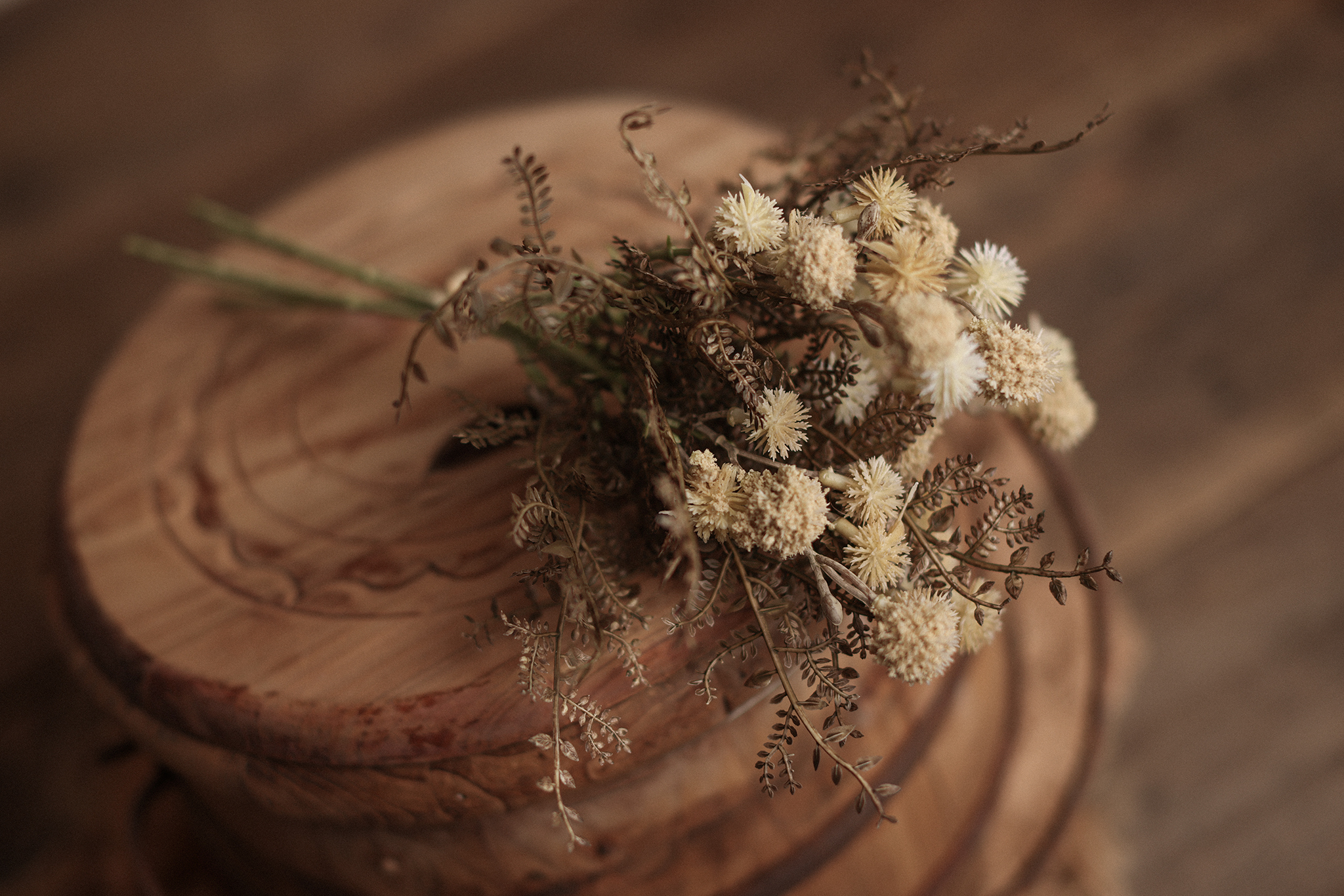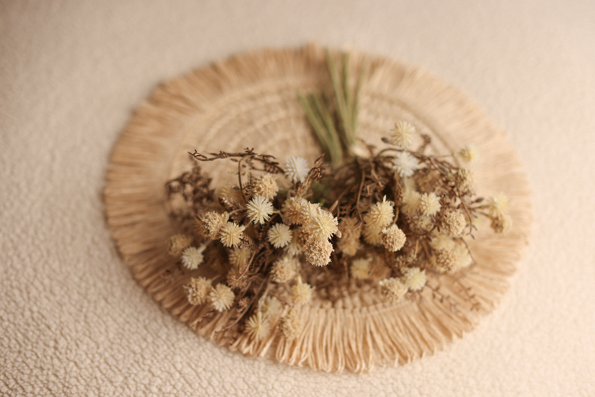 A delicate bundle of soft beige florals and rustic greenery, the Whispering Meadow Bouquet adds a gentle touch of nature to your setups. Each stem carries an earthy, sun-kissed tone that blends beautifully with wooden props and neutral fabrics.