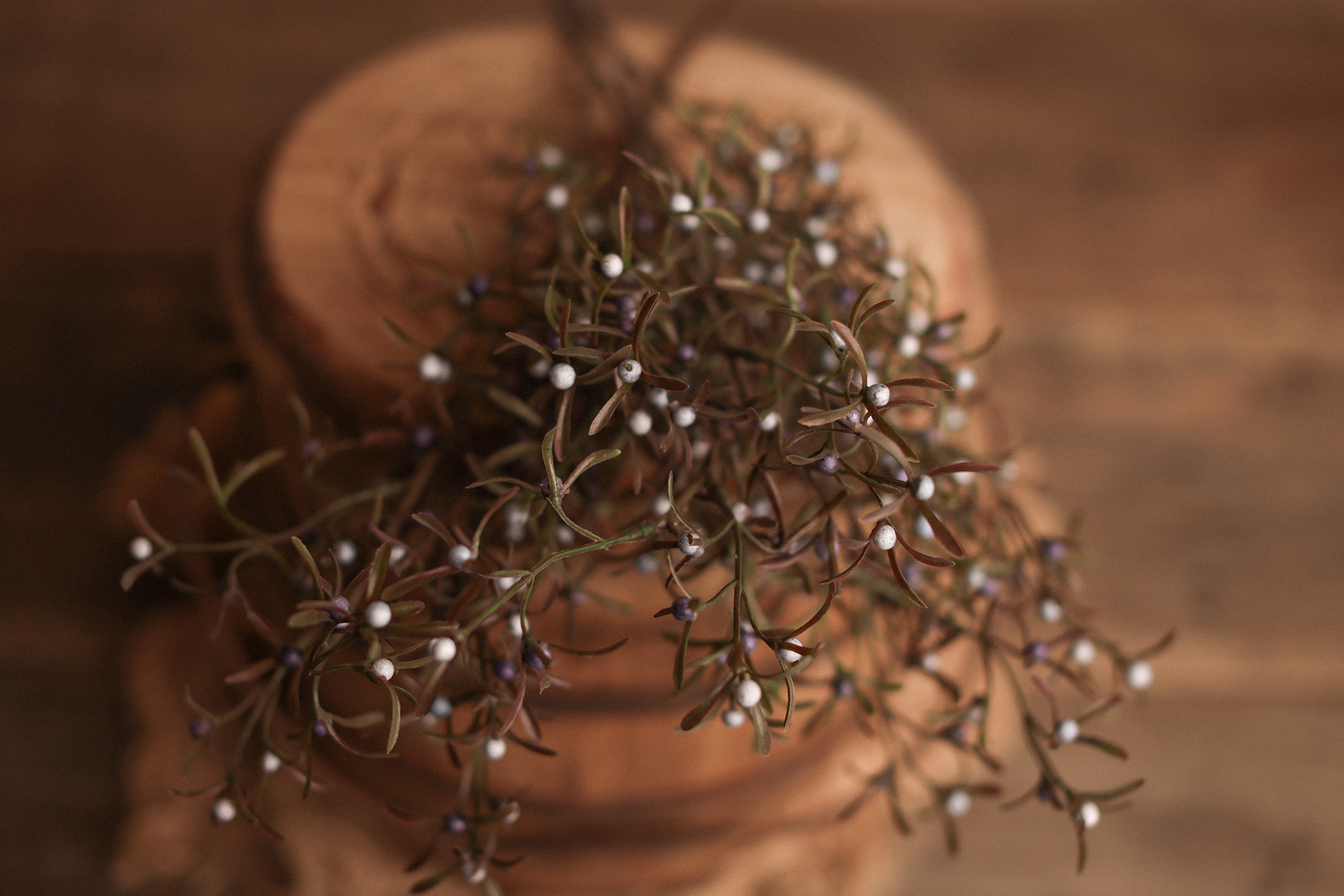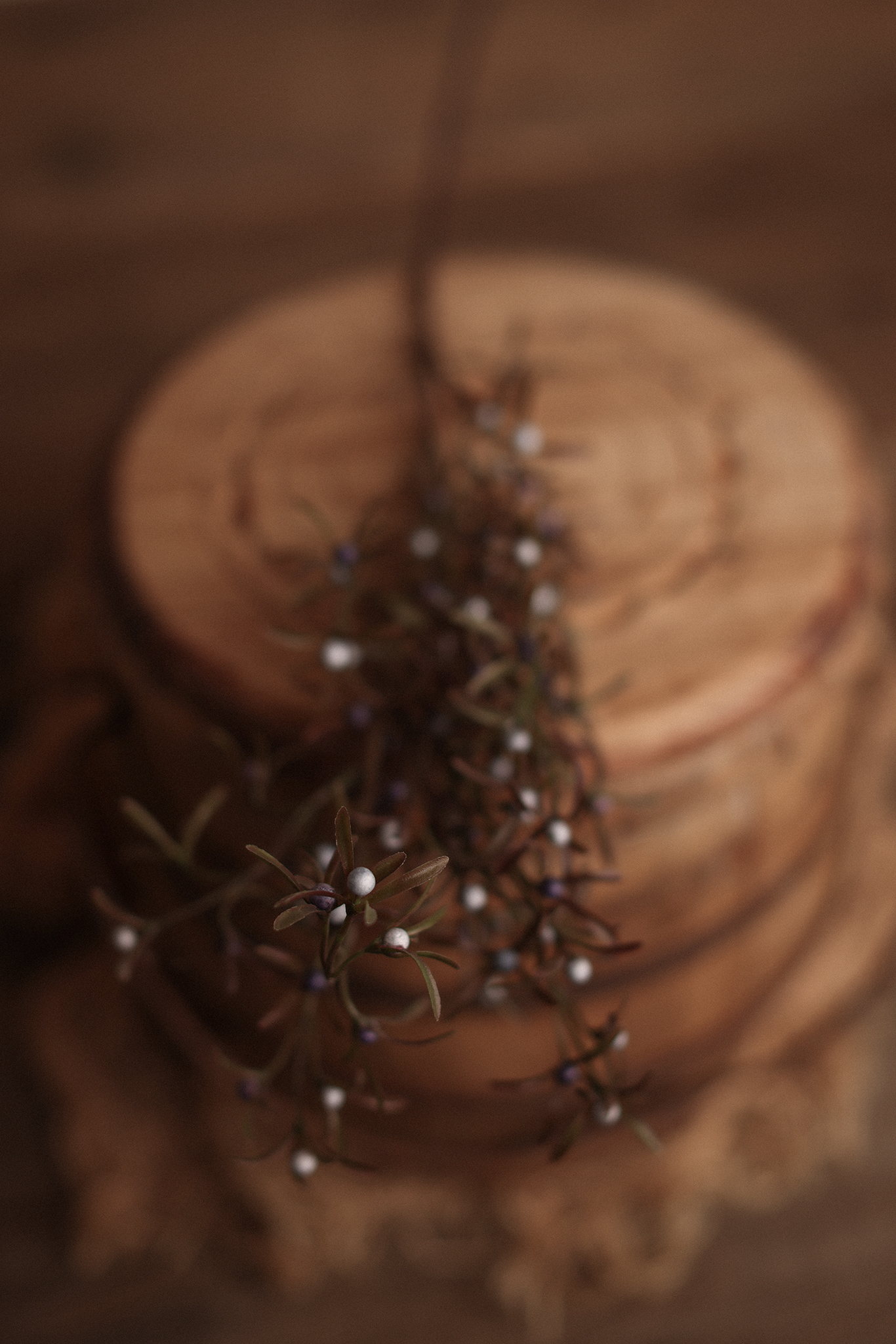 The Winter Berry Stem brings a gentle hint of seasonal magic to your setups. With deep green sprigs and tiny pearl-like berries in soft whites and muted purples, it evokes the quiet beauty of winter mornings.