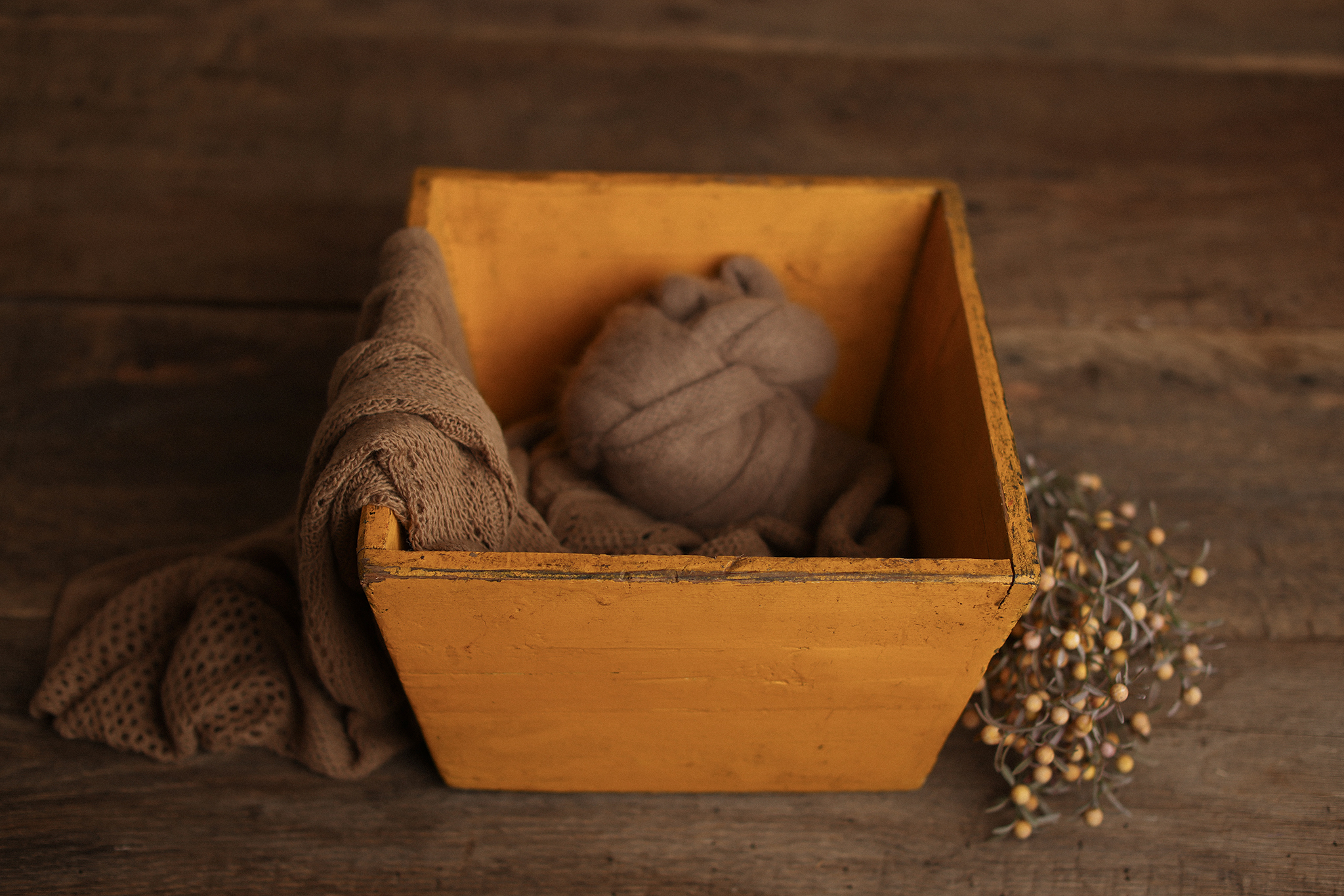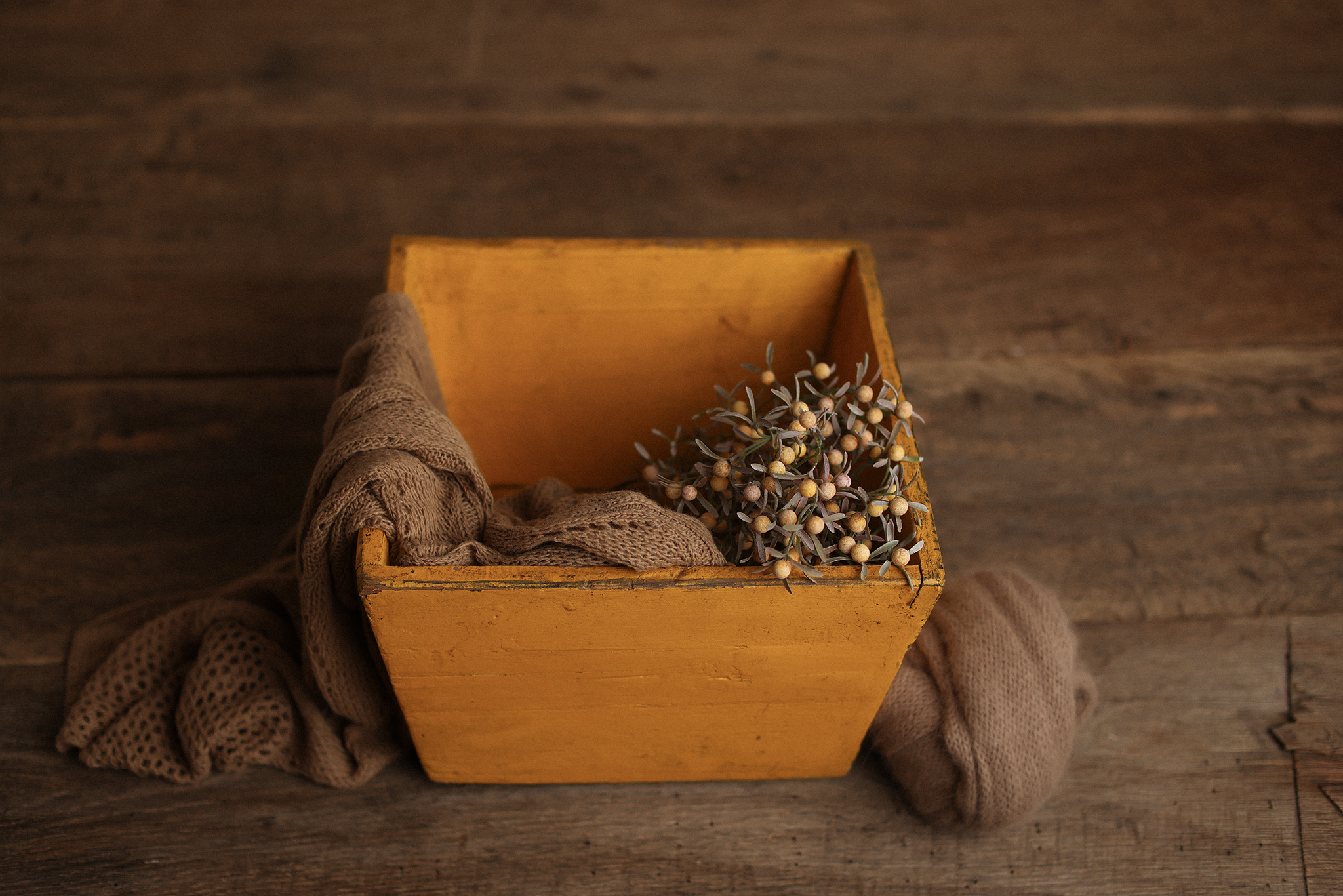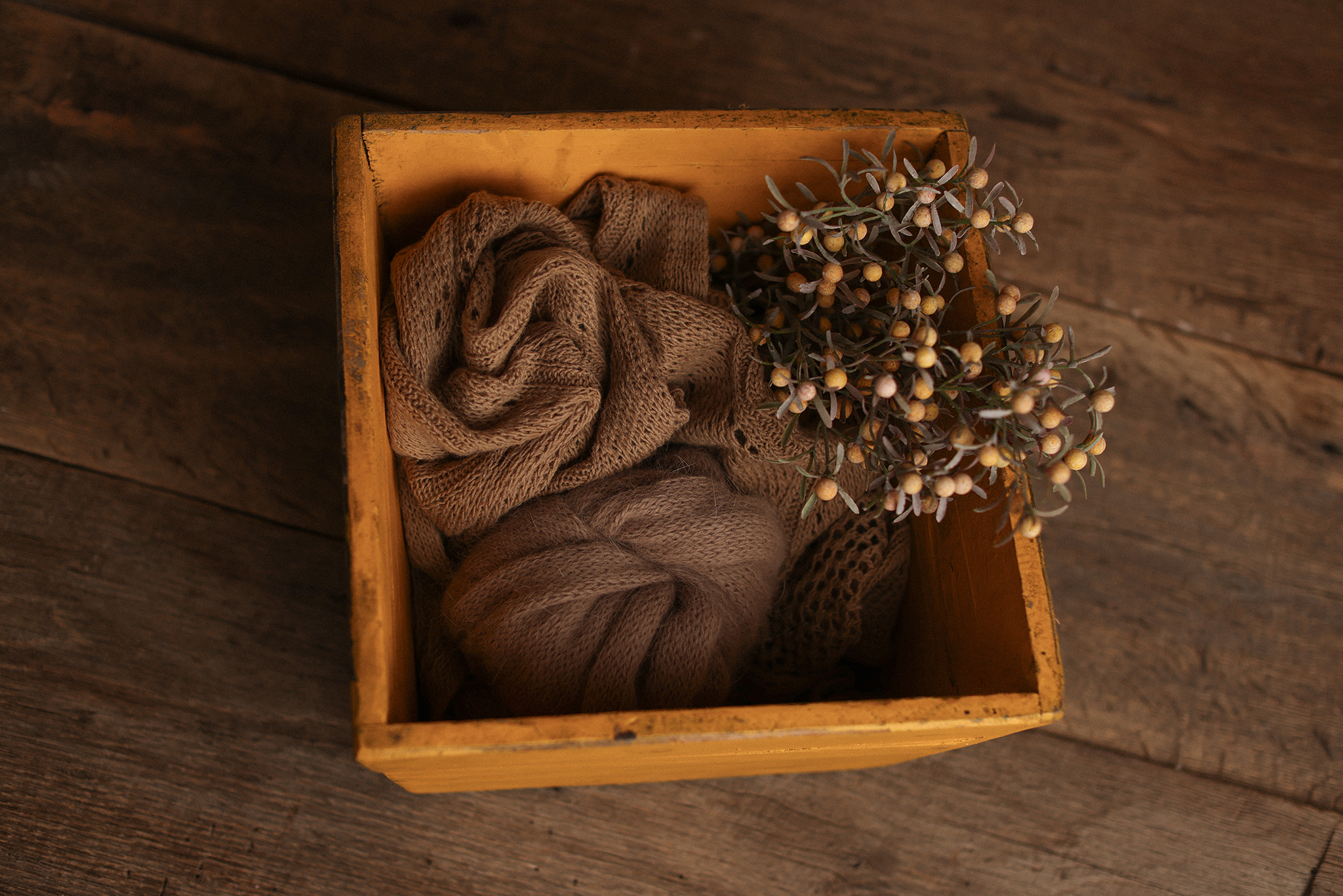 unique vintage crate + Layer ” wrap ” greenery
